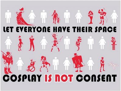 Verbal comments that reinforce social structures of domination related to gender, gender identity, sexual orientation, disability, physical appearance, race, age, or religion; Sexual images in public spaces; Deliberate intimidation, stalking, or following; Harassing photography or recording; Sustained disruption of talks or other events; Inappropriate physical contact; Unwelcome sexual attention; Advocating for, or encouraging, any of the above behavior. THIS MUST BE REITERATED - HANDS TO YOURSELF. COSPLAY IS NOT CONSENT. COSPLAY IS NOT CONSENT. SAY IT WITH ME: COSPLAY IS NOT CONSENT.
